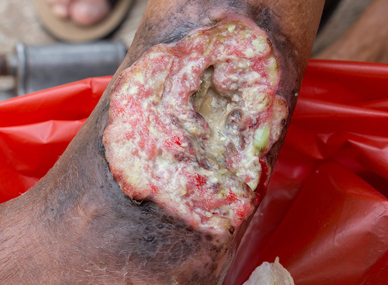 Oncologische wonden zijn een complicatie van kanker die ontstaat wanneer kanker die onder de huid groeit door de huid breekt en een wond veroorzaakt.