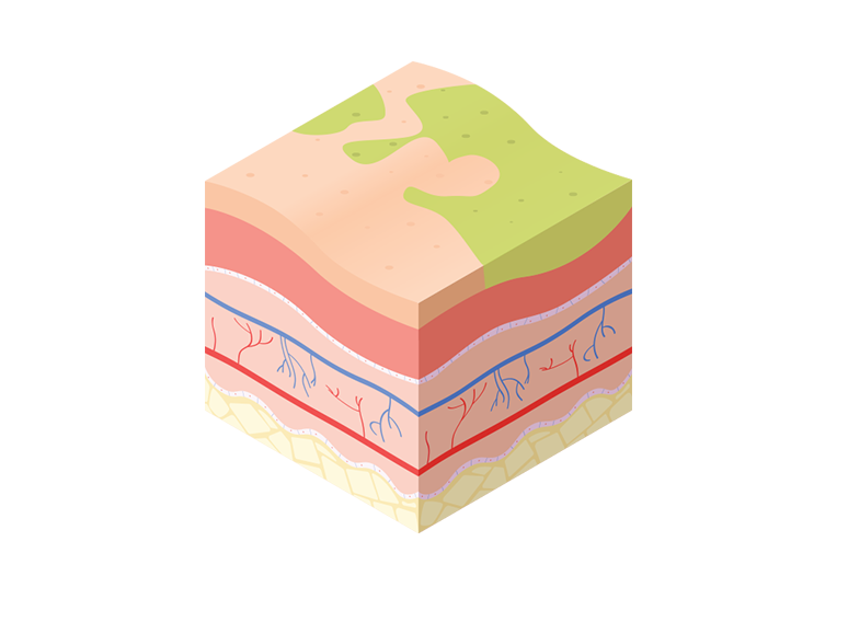 Caviteitswonden kunnen worden gedefinieerd als een wond die zich uitstrekt tot onder de dermis.