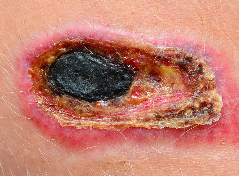 De aanwezigheid van necrotisch materiaal in de wond kan de genezing vertragen en een omgeving voor infectie creëren1.